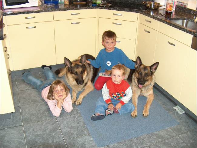 Unsere Enkelkinder mit den Hunden